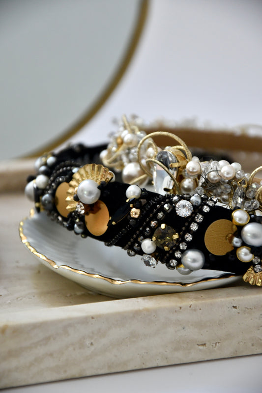 Plaukų aksesuarai, lankeliai, nuotakų plaukų papuošalai dekoruoti kristalais, perlais ir stiklo karoliukais. Plaukų lankeliai yra universalaus dydžio. Didelis nuotakos plaukų papuošalų pasirinkimas
