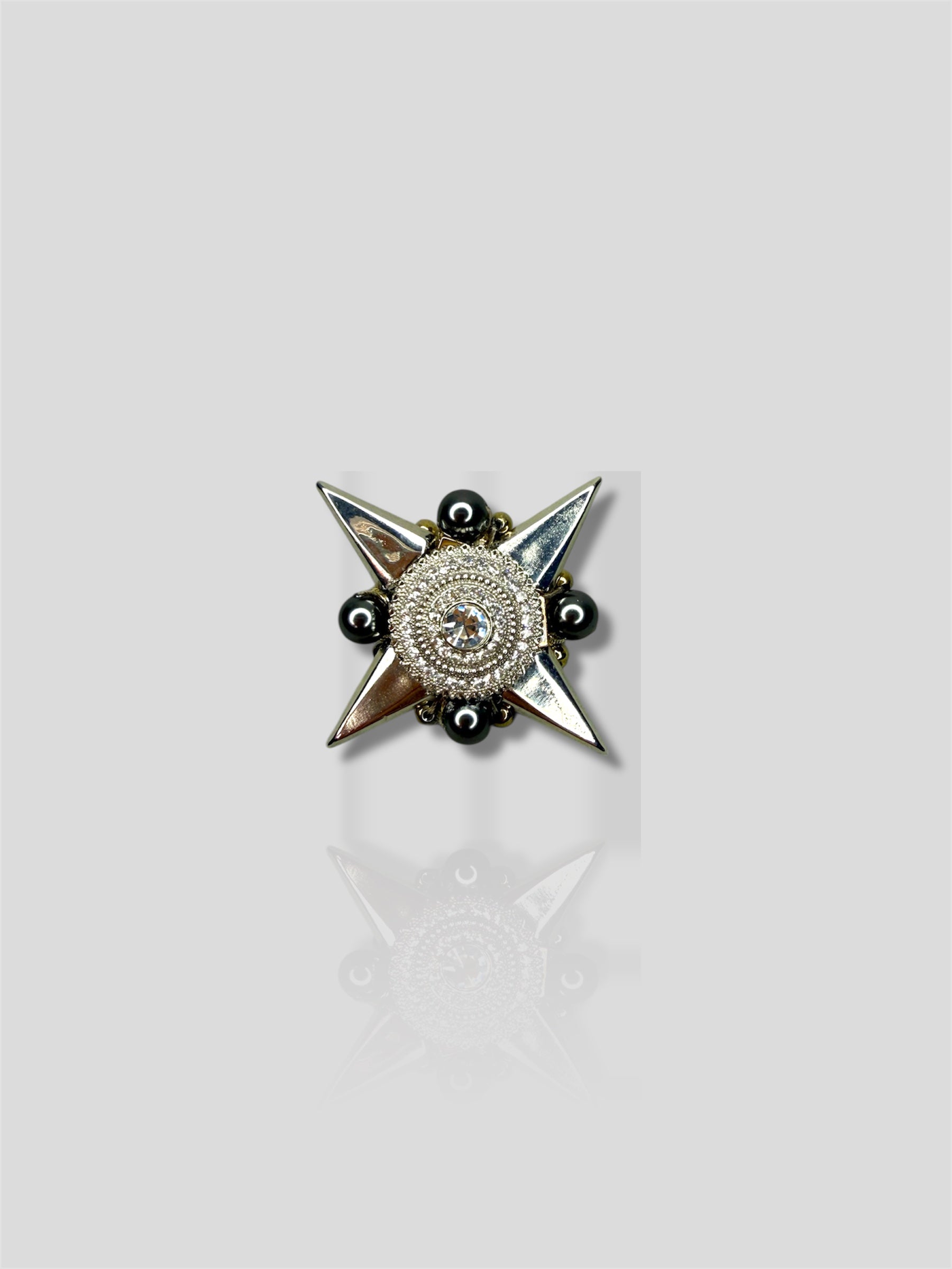 - Sagės dydis: 4,5 x 4,5 cm. Primero kristalai, hematito detalės, bižuterija.