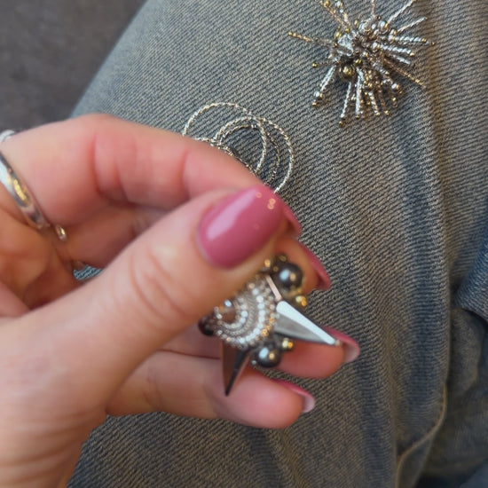 Nori stipresnio įspūdžio? Derink su šiomis sagėmis kartu: ,,Sage su sidabro ir aukso spalvos detalėmis" , ,,Sagė su spygliais'' , ,,Apvali sagė''
